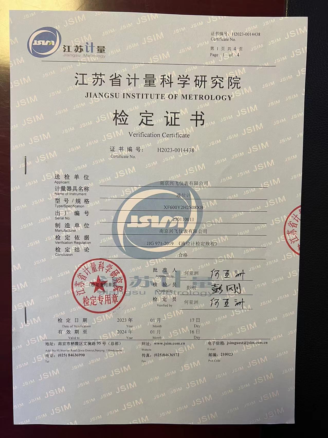 液位計檢定證書